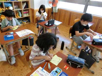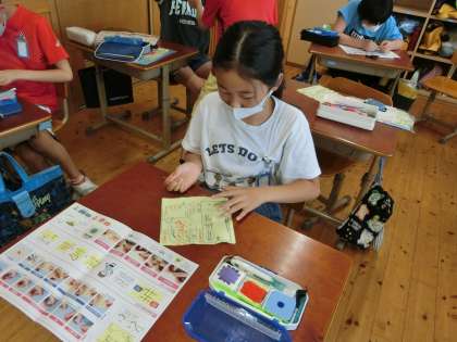 ひと針に心を込めて(5年) 公開日 2022/07/01 更新日 2022/07/01 5年生 家庭科の学習で裁縫の玉結びや玉止めにチャレンジしています。最初はむずび目が思った位置に作れなかったり,ほどけてしまったりしましたが,少しずつ思い通りにできるようになり,時間の最後には名前や漢字の縫い付けもできるようになりました。これからボタン付けやなみ縫いにもチャレンジしていきます。