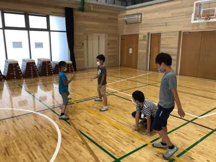 7月の体力アップタイム(4年) 公開日 2022/07/14 更新日 2022/07/14 4年生 7月の体力アップタイムは「ストレッチ・体ほぐし」です。 柔軟性を高めることを目標に, ・進化ジャンケン ・リンボーダンス ・ヨガのポーズ などのグループに分かれて,活動しています。