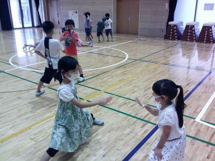 今月の体力アップタイムの時間は,自分で種目を選んでチャレンジしています。「ヨガ」のポーズをしたり,ジャンケンをしてどんどん足を開いていったり,背中を倒してゴムを通り抜けていったり,体の柔軟性を高めることをめあてにみんなで楽しくチャレンジしました。