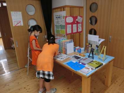 今日は朝から雨がよく降っていました。運動場に出られずがっかりしている子もいましたが,読書センターにやって来て,読書を楽しんだり,お気に入りの本を探したりしてそれぞれの時間を過ごしている子がいました。そのため,図書委員さんは,本の貸出に大忙しでした。