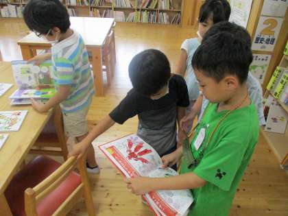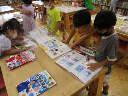 もうすぐ夏休み。自由課題で,何をしようか,みんなわくわくしています。今日は,読書センターへ行って,工作や実験の本を見に行きました。本を開くと,おもしろそうな工作があって,「材料を集めてみようかな。」「おもしろそうだから,がんばってみようかな」と作り方を確かめていました。本日,希望の資料を持ち帰っていますので,ぜひ,夏休みに挑戦してください。