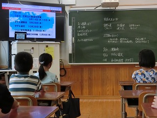 久しぶりの学校で、中には少し眠たそうにしている子どもたちもいましたが、教頭先生の合図で「起立・礼・着席」を揃えて行ったり、校歌をしっかりと静聴したりする姿から「2学期もがんばろう」という気持ちが伝わってきました。