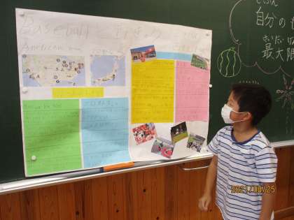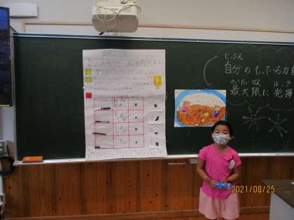 夏休み中に,自分でめあてをもって,取り組んだ「自由課題」の発表会をしました。いろいろな課題があって,友達のがんばりを聞いて「どうやって作ったの」「くわしく知れておもしろかったよ」「自分で考えて作ったのがすごいね」「遊んでみたいな」など興味深々で聞いていました。どの作品も力作で,友達ががんばったところをすぐに見つけて,すてきだと思ったことろを伝えていました。9月5日(月)〜の自由研究作品展で展示しますので,ぜひ,ご覧ください。