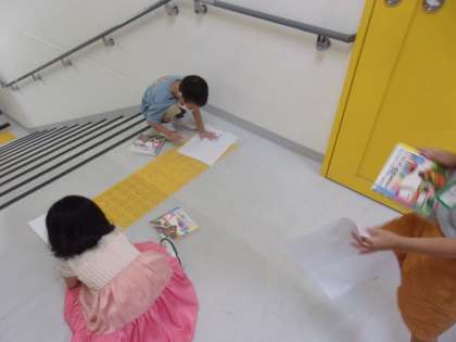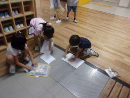 図画工作科の学習で、学校の中のでこぼこを探しに行きました。