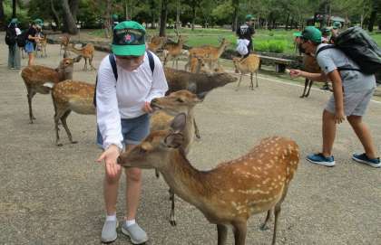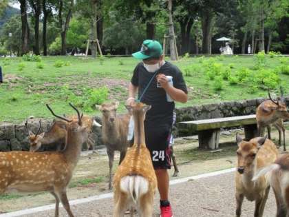 社会見学2(6年) 公開日 2022/09/02 更新日 2022/09/02 6年生 東大寺の大仏殿を見学した後は,奈良公園にいるシカに会いました。 子ども達はとても楽しそうにシカとふれ合っていました。