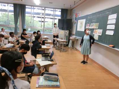 みんなの前に出てグループで考えた意見を根拠をもとにしっかり話すことができていました。堂々と話す姿が頼もしかったです。教室前に展示している自由研究作品を見ていただくこともできて、子供たちは大変喜んでいました。