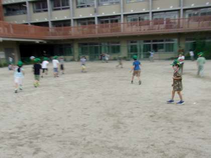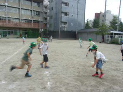 遊び係がクラスみんなで鬼ごっこを企画して、運動場で遊びました。