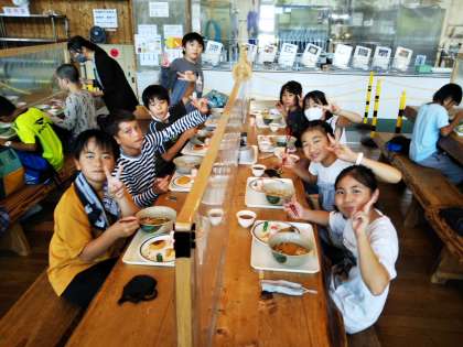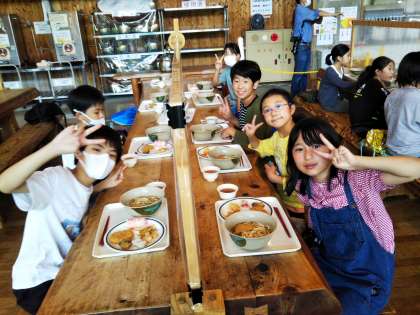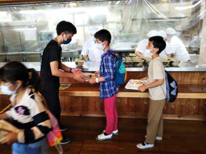花背山の家 宿泊学習4 公開日 2022/09/14 更新日 2022/09/14 5年生 昼食の時間です。 一人ずつトレーにおかずをのせて、グループに分かれていただきます。 おいしくておかわりする人もいました。