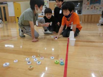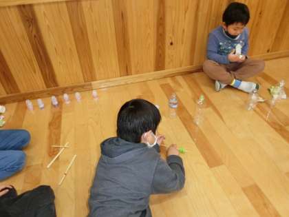 生活科の学習で、お家ではいらなくなってしまったような物を生かして、「うごくおもちゃ」を作りました。「どうしたら、友達に楽しんでもらえる人気のあるおもちゃが作れるかな」と試しては、工夫して、自分のおもちゃがよりよくなるように一生懸命考えていました。友達と遊んでみると、いろいろな遊び方ができ、工夫があり、夢中になって遊び、友達のよさを見つけていました。