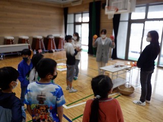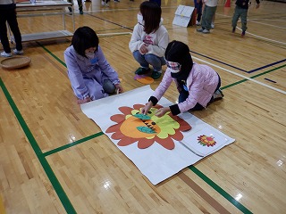 体育館では、七面鳥の福笑いや協力してカボチャをキャッチする遊びなど、見ている人もワクワクするようなゲームを楽しみました。