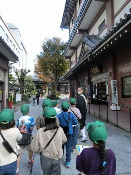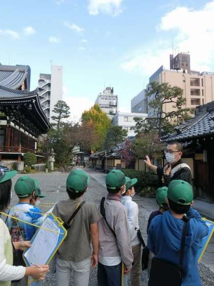 本能寺さんでは、広い境内を見学させてもらいました。お寺は火事や移転が何度もありながら、今までずっと受け継がれてきたことなどを教えていただきました。また、季節によって景色が変わっていくことを知って、次は違う季節に来てみたいと話していました。
