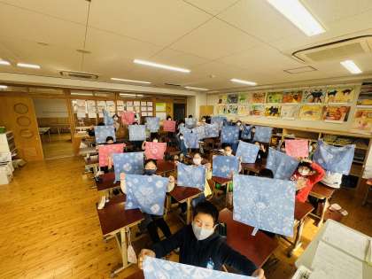 出来上がったハンカチを愛おしそうに眺めたり、たたんだりする様子を見ていると、本当に嬉しいんだということがよくよく伝わってきました。伝統工芸士さんがおっしゃっていた「失敗はない!」という言葉に背中を押された子どもたちも多くいたと思います。