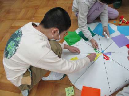 2月に行われる小さな巨匠展に向けて、御所南小学校、高倉小学校と合同作品製作を行いました。今年度中京支部では、遊園地をテーマにした作品を制作していて、観覧車を作ることになりました。