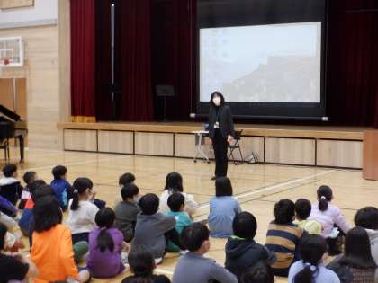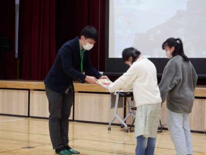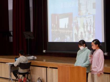会の前半は、校長先生やPTA会長の丸山さんから、御所東小学校が開校する前から、子どもたちのために良い学校にしようと地域の方々と何度も話し合いを重ねたことを教えてもらいました。さらに、これから10周年も20周年も迎えられるような素晴らしい学校になるために、一人一人がさらに御所東小学校のことを知り、好きになってほしいというメッセージをいただきました。また、6年生が作成したVTRを見ながら、御所東小学校の今までの取組をふり返ったり、アンケートの結果から「きずな活動」をみんな楽しみにしていることがわかったりしました。