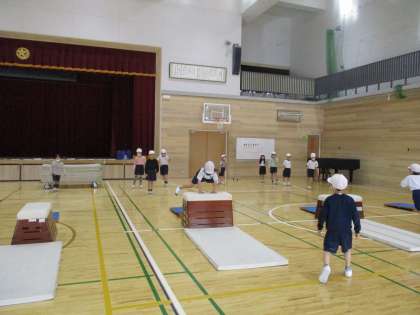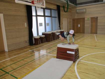 体育科「とびばこあそび」(1年) 公開日 2023/01/24 更新日 2023/01/24 1年生 1年生は体育科の学習で「とびばこあそび」をしています。 高いとびばこの上からジャンプをしたり、 またがりながら進んでいったりと、 とびばこを使ったいろいろな動きを楽しんでいます。 得意な子は開脚とびなどもしています。 準備や片付けもお手のもので、 色々なことができるようになったのだなと感心しています。