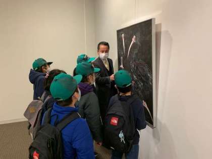 日本画・洋画・彫刻・ファッションアートなどの作品が展示されており、どれも力作ばかりです。子どもたちは、「すごい!すごい!」と心を躍らせながら鑑賞していました。