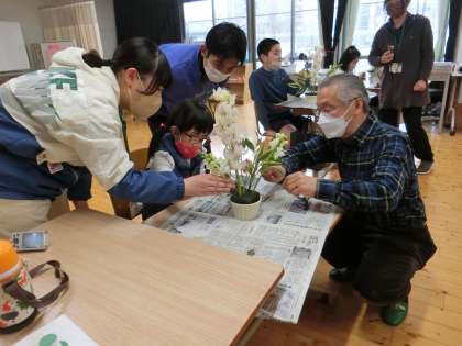 まだまだ寒い日が続きますが、みんなのすてきな生け花を見ていると、一足早い春の訪れを感じることができ、教室もとても華やかです。