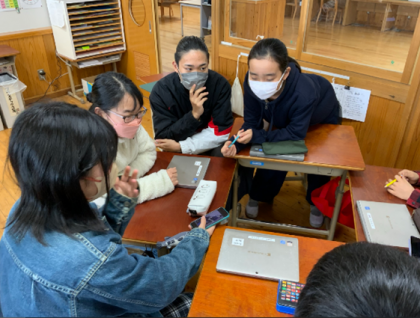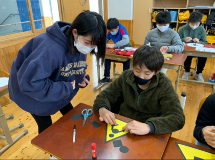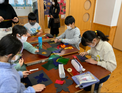 絵画の世界をコマ撮りのアニメーションを撮影しながら表現したり、ペーパークラフトの作品を使ってステンドグラスを作ったり、身近な動作を使ってオリジナルピクトグラムづくりをしたり…。高校生が楽しく授業を進めてくれました。