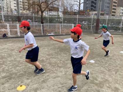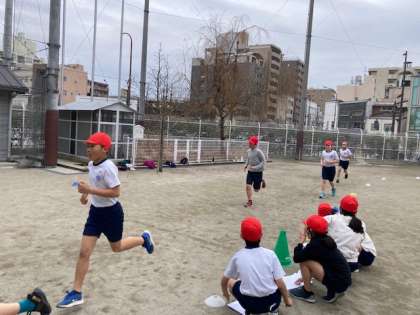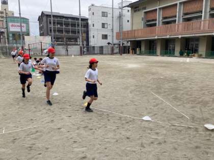 体育科の学習『ジョギング』では、教室の隣机の友だちとペアを組み、2つのグループに分かれ80mのコースを使って6分間走を行ってきました。5周ごとのラップタイムをペアが記録しながら自分の目標の周数に向けて走っています。ペアの友だちが走っている時には記録をとりながら、「がんばれっ!この前よりいいペース!」、「スピード上げていこう!」「まだまだ出せるよ」などの励ましの声掛けが自然とできていました。中には一緒に伴走しながら応援する姿も見られました。友だちを思いやることができていて、とても清々しいです。持久走はしんどいことではありますが、友だちと声を掛け合いながら、自分の記録や目指している目標を打ち破っていくことができました。