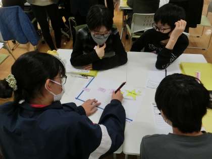 6年生の総合「共に生きる」では、今までに聞かせてもらった話とアンケートした結果を比較しながら、みらい表現発表会で5年生に伝えることについて話し合いました。たくさん伝えたいことがある中から、何をどのように伝えるとよいか、自分たちがこの学習を通して考え方が変わってきた経験なども合わせて、考えたことを一人一人が自分の言葉で話す姿が見られました。