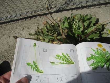 ひと通り読んだタイミングで、実際のたんぽぽを見に行ってみると,説明文中に示されていた4つのたんぽぽの姿を実際に確認することができました。また、わた毛も改めて見てみると種がついているのがはっきりと見えました。これまで何気なく見てきたたんぽぽの見え方が変わったように感じます。