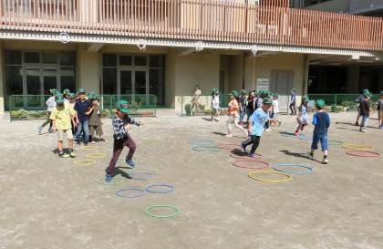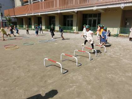 今月のメニューは,「ケンパ」です。ケンパは、みんな慣れているのでリズムよく軽快に跳びはねていました。