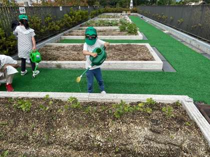3組畑には、ニンジンに加えて、枝豆の苗を植えました。