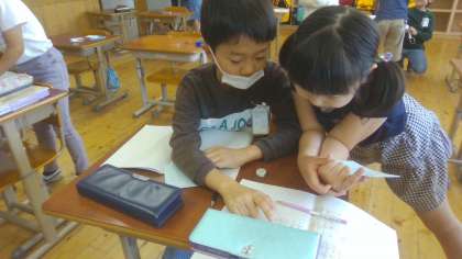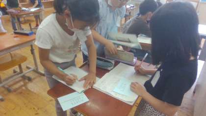 オリジナル問題にチャレンジ(3年) 公開日 2023/05/25 更新日 2023/05/25 3年生 算数科「たし算とひき算の筆算」のまとめとして、3桁より大きい筆算の問題を考えて、出題し合う活動を行いました。くり上がりやくり下がりのある計算を考えたり、千の位より大きい計算の筆算を考えたりして出題することができました。交流の時間には、友だちの問題に思わず「うーむ…」と考え込む姿や正解して「やったあ!」と喜ぶ姿も見られました。3桁より大きい筆算の計算にもチャレンジできました。