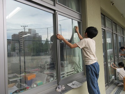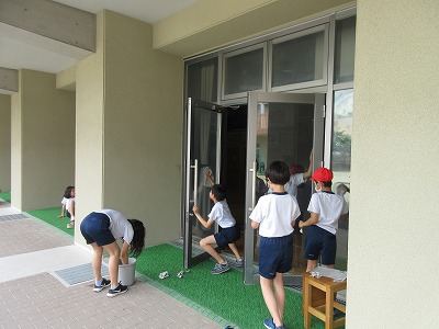 5月30日は「ご、みゼロの日」いつも掃除をしていない場所を中心に掃除しようと取り組みました。5年生は、1年生の教室の窓と、職員室・3組・保健室前、体育館の窓ふきを行いました。窓は、運動場に面しているため、外側には砂ぼこりがたくさんついています。拭くととぞうきんがすぐにまっ茶色に。そんな中、一人一人が、窓をピカピカにしようとぞうきんと新聞を使って、きれいに拭いていました。おかげで今、職員室が少し明るくなり、運動場がくっきり見えています。今日は、5年生も、きれいになったことを実感し大満足でした。一生懸命頑張る姿がとても素敵でした。