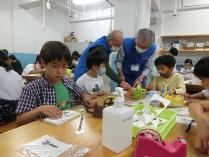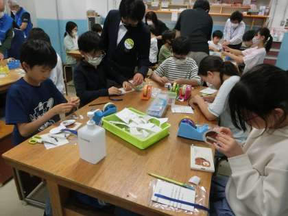 京都モノづくりの殿堂・工房学習1(4年) 公開日 2023/06/01 更新日 2023/06/01 4年生 京都モノづくりの殿堂・工房学習に行きました。工房学習では、実際に京都の先端産業を体験しました。作品が無事完成して、とてもうれしそうでした。