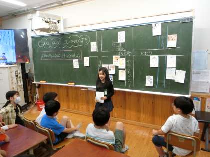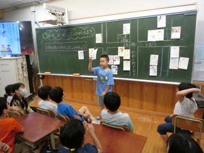 生活科の学習では、自分達の住む「御所東のまち」に目を向ける学習をしています。今日は、「自分のお気に入りの場所」を友達と紹介し合いました。「わたしの好きな場所は、子どもみらい館です。たくさんの本があって、楽しめるからです。」「ぼくの好きな場所は、八百屋さんです。なすやみかんがおいしいからです。」「ぼくは、鴨川がお気に入りです。跳び石を跳ぶのが楽しいからです。」などたくさんのお気に入りの場所を聞くことができました。友達の話に興味深々で聞いていました。次は、隣りのクラスのお話も聞いてみたいなと思っているようです。