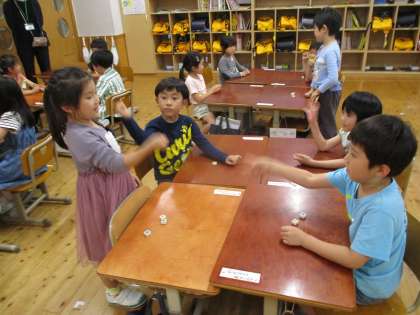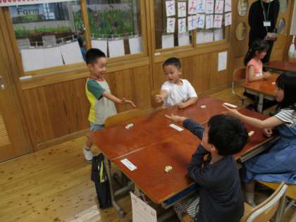 算数科「0というかず」(1年) 公開日 2023/06/13 更新日 2023/06/13 1年生 算数科で「0という数」について学習しました。 何もないことを数で表すと「0(れい)」になるということを知って、 じゃんけんゲームをしました。 じゃんけんで勝つごとにブロックを減らしていき、 最後は1つもなくなります。 「ブロックはいくつになったかな?」 「0こになったよ」 と、遊びながら0のイメージをつかみました。