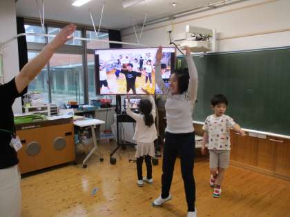 ダンスのデモンストレーションビデオは他校のお友だちが踊る姿を録画して共有してくれました。3組では朝の会でこのビデオを見ながら楽しく踊っています。練習するごとにみんな上手になってきており、「こんなふうに踊るといいよ」とアドバイスをしたり、実際に動いて見せたりする姿が見られています。