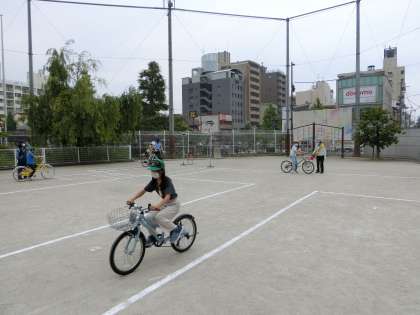 実際に道路に出ているつもりで、前後左右の安全確認や正しい交差点の渡り方など教えていただいたことを思い出しながら、乗ることができました。