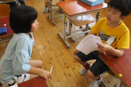 今月の「きずなの日」の学習で、3年生は、友達と自己紹介をし合って、同じところと違うところを探しました。好きな食べ物や好きな教科、得意なこと、性格などをいろいろな友達と楽しく話しました。学習後の振り返りでは、「友達とは、同じところもあるけれど、ちがうところもたくさんあると分かりました。」「みんな絶対に同じじゃないといけないわけではないと分かりました。」ということがたくさん書かれていました。それぞれの違いを認め合い、お互いを大切にできる友達関係を築いていってほしいと思います。