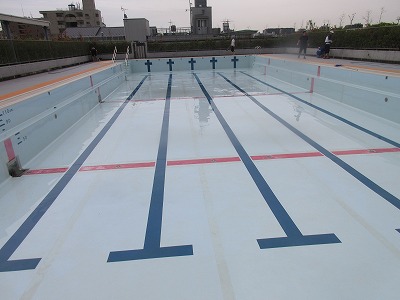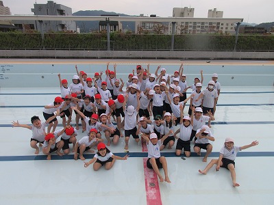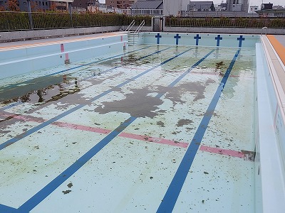 とてもきれいなプールに変身しました。やりきった子どもたちも「みんなが気持ちよく入ってくれたらうれしいな」と満足気。楽しみながら前向きに取り組むことができました。