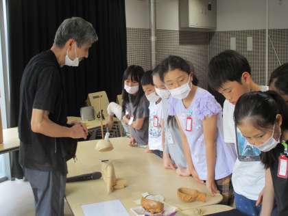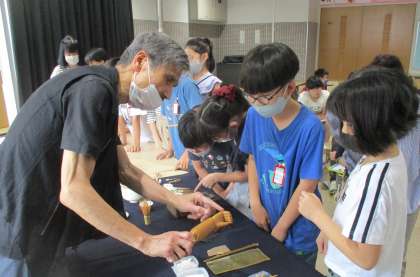 お話を聞いて、子どもたちは、「京人形のしなやかな動きをミリ単位の調整でしているのはすごい。」「『使ってもらう人が喜んでくれるようにしよう。』という思いが魅力なのかな。」など一人一人が魅力を見つけるために、真剣に聞いている姿が見られました。
