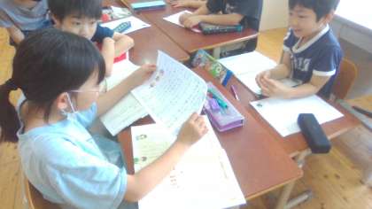 国語科『こまを楽しむ』で、教科書に出てくる6つのこまの中から遊んでみたいこまとその理由を文章にまとめました。友だちと交流する時間には、自分のまとめた文章と似ているところや違うところを比べながら聞き合い、そこから考えたことや気付いたことをふり返りました。そこでは、「〇〇さんが理由でこまの回っているところを写真やビデオに撮ってみたいと言っていたのが自分の理由にはなくて、納得しました」など自分の意見と比べながら交流することができていました。