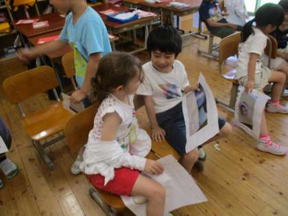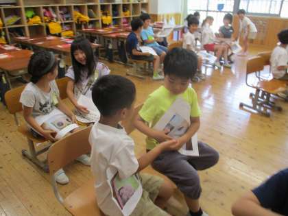 国語科「くちばし クイズ交流会」(1年) 公開日 2023/06/21 更新日 2023/06/21 1年生 「くちばし」の学習でクイズを作りました。 作ったクイズはペアで交流しました。 「これは何のくちばしでしょう。」 「これはキーウィのくちばしです。」 自分で書いた「問い」と「答え」の文を伝えて、 クイズを出すことができました。