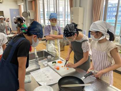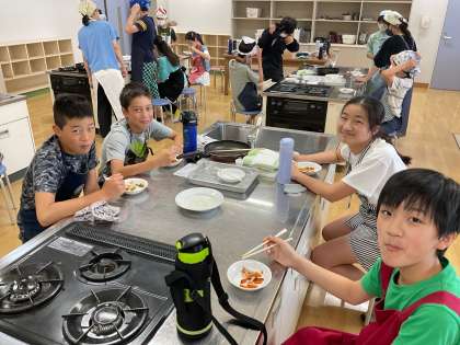 久しぶりの調理実習に最初は緊張が感じられましたが、自分たちの調理計画を頼りに、声を掛け合いながら進めることができていました。「ちょっとこげたけど、美味しい!」「野菜の大きさが丁度いい!」など、自分たちの調理に満足しながら食べていました。週末に、家で調理に挑戦した子たちもいて、「一回やったから、一人でもスムーズにできた!」「アドバイスが分かりやすくて、やっぱりお母さんってすごい!」といった感想もありました。