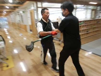 不審者役の教員に対し、最初の対応はどうするか、不審な動きがあったときの対応はどうするかなど、お互い真剣に、緊張感をもって訓練をしました。