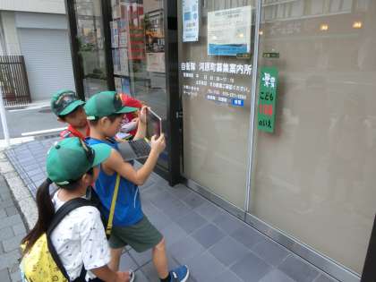 そこで、上京警察署からスクールサポーターにご協力いただき、危険な場所や場面、そのときの対処についてお話していただきました。それをふまえて実際に校区に足を運び、