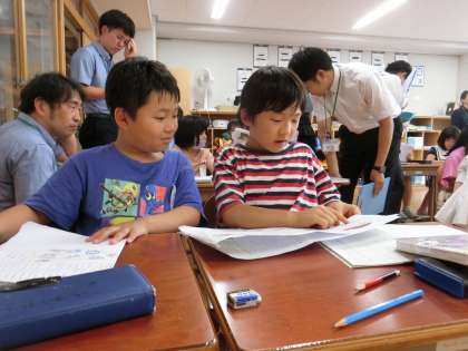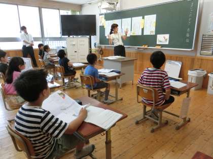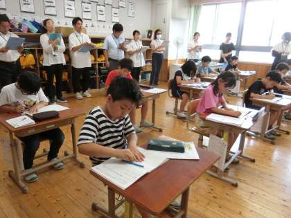 授業研究会(3年 国語科)を行いました。物語文「まいごのかぎ」は、不思議な出来事が起こるお話です。その不思議を解決するために読み進めてきましたが、この日は、登場人物の気持ちが最初と最後で変わった理由について考えました。登場人物の気持ちを場面の移り変わりと結び付けながら想像を膨らませて読んでいました。ペア交流では、叙述に基づきながら自分の思いを友達に話す姿が見られました。