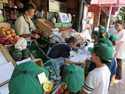 地域の八百屋さんへ、サツマイモやナスをいただいた御礼に行きました。「ナスが苦手だったけれど、『あれっ。ナスってこんな味だったかな』と不思議に思うくらい美味しくて、八百屋さんのナスは食べられました。」「サツマイモは、何も味をつけていないのに、甘くてびっくりしました。」など一人一人、感じたことを手紙に書いて届けました。大変、喜んでくださり、子ども達に温かいお声かけをしていただきました。野菜のお話やおもしろいお話もしてくださり、八百屋さんとの会話がとても楽しかったようで、子ども達は、ずっと話をしていたい様子でした。