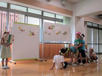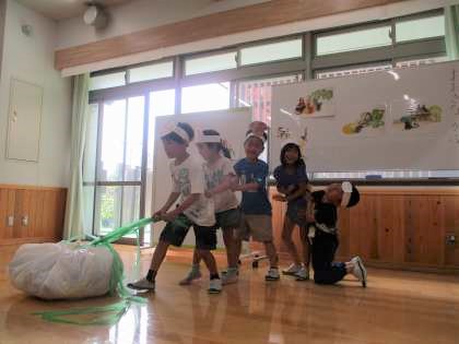 国語科「おおきなかぶ」(1年) 公開日 2023/07/19 更新日 2023/07/19 1年生 国語科の「おおきなかぶ」の学習で、 1・2組合同の音読劇をしました。 かぶをぬくためにどんどん人が増えていく感じを、 音読や動きで表現しました。とても楽しい発表会になりました。