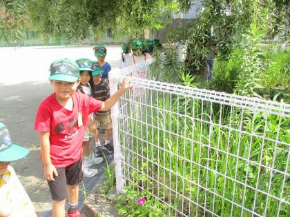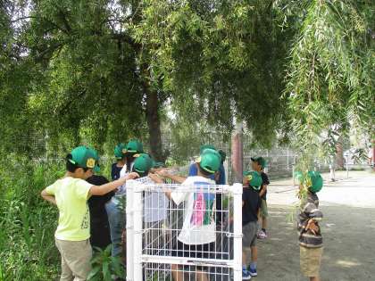 夏を見つけに御所に行く予定でしたが、暑さ指数が基準値を超えていたため、校内での夏探しとなりました。虫がいたり、木漏れ日が見えたりと、目で見て感じる夏がたくさんありました。