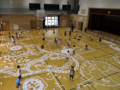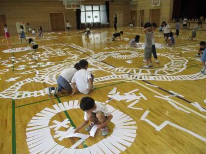 まるで地上絵のように絵ができていきました。