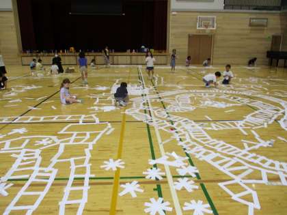 図画工作科の学習では、体育館で造形遊びをしました。