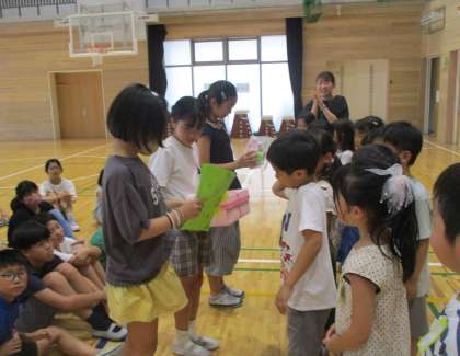 今日は、そのお礼の会を開いてもらいました。1年生から「ありがとう」の言葉をもらった5年生はとても嬉しそうにしていました。教室に戻ると、とてもよい笑顔でした。