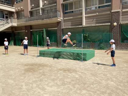 体育科の学習では、走り高跳びに挑戦しました。